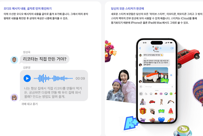 - 오디오 메시지를 글자 형태로 미리 확인 후 음성 메시지는 나중에 들을 수 있습니다.